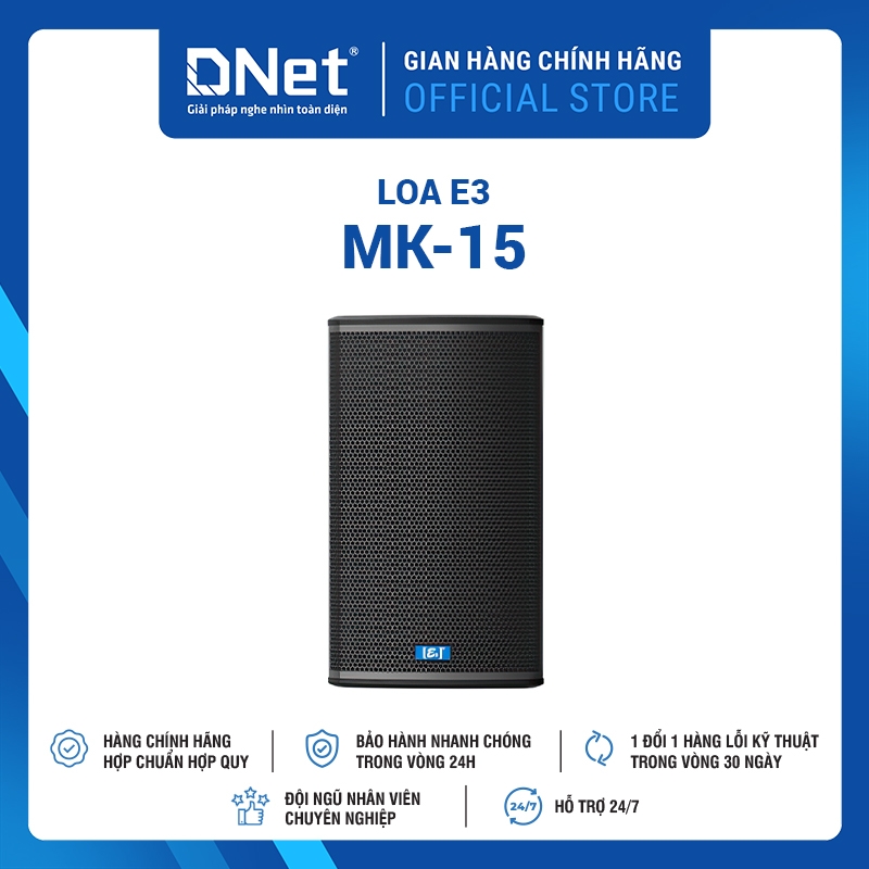 Loa full E3 MK-15 sở hữu thiết kế 2 đường tiếng với 1 loa bass 40cm (cuộn âm 6.5cm chịu nhiệt cao) và 1 loa treble 2.5cm. Được sản xuất trên dây chuyền hiện đại, hệ thống loa đảm bảo chất âm bass chắc khỏe, uy lực, treble sáng rõ, tái hiện âm thanh trung thực. Với kích thước tối ưu và trọng lượng chỉ 23kg/loa, E3 MK-15 phù hợp với nhiều không gian, đặc biệt lý tưởng cho phòng karaoke từ 20m2 đến 25m2.