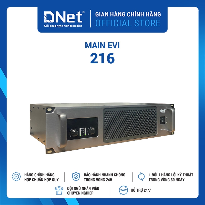 Main EVI 216, hay còn gọi là cục đẩy công suất, là thiết bị không thể thiếu trong các dàn âm thanh karaoke gia đình, hội trường, và sân khấu chuyên nghiệp. Chức năng chính của nó là nhận tín hiệu âm thanh từ các nguồn phát (đầu DVD, micro không dây...) và khuếch đại tín hiệu đó đến loa, tạo ra âm thanh to, rõ ràng và mạnh mẽ.