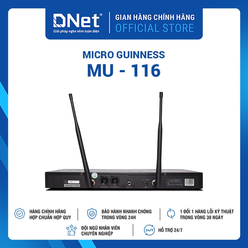 Thông số kỹ thuật : Micro Không Dây GUINNESS MU - 116